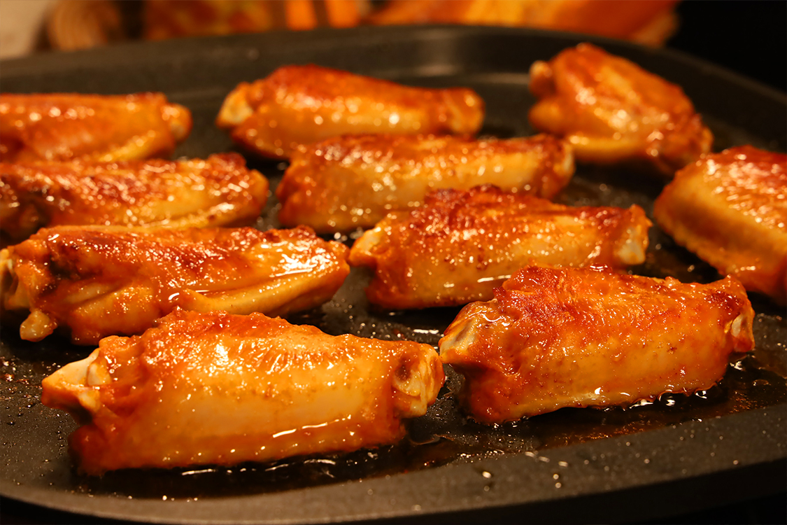 ② 噴油:可少量噴一層油,口感更脆(雞翅自身有油,也可省略)。