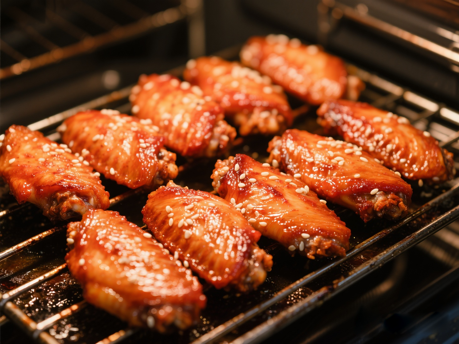 ④ 增亮(可選):出爐前3分鐘,取出雞翅,表面刷上一層蜂蜜水(蜂蜜與少量水調(diào)和),再放回烤箱繼續(xù)烤制,可使色澤更油亮、風味更有層次。