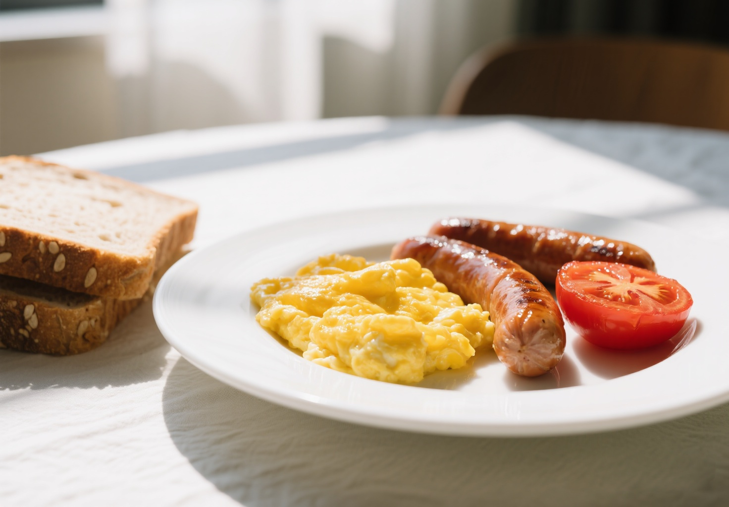特點:搭配炒蛋和烤番茄,奶酪香腸提供優(yōu)質(zhì)蛋白,開啟滿足感十足的一天。
